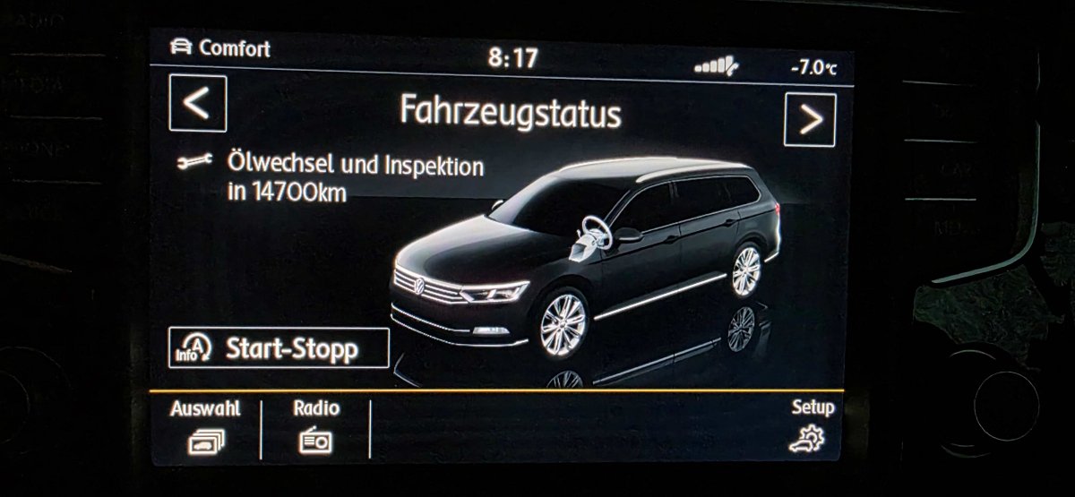 Hallo zusammen, habe das Problem, dass seit gestern der Hinweis zum Ölwechsel und Inspektion kommt. Anscheinend lief was schief, da vor paar Tagen ein 15.000KM Ölwechsel gemacht wurde und die Werkstatt mit den Kilometern einen 30000KM Intervall vorgetäuscht hatte. Siehe Bilder. Evtl. kann mir jemand sagen was ich machen muss, damit die Meldung nicht mehr erscheint. Vielleicht hat auch jemand einen Screenshot vom Service Assistent und seinen Einstellungen. Vielen Dank und VG